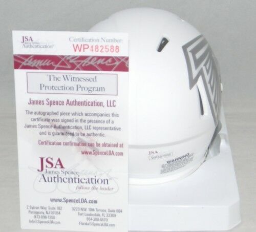Vic Beasley, Pro Bowl linebacker for the Atlanta Falcons, has hand signed this Falcons Riddell Speed Ice mini helmet at a private signing. This item comes with a certificate of authenticity (COA) from JSA - James Spence Authentication and was signed in the presence of one of their representatives. You will receive a serial-numbered COA along with a matching serial-numbered sticker on the helmet. The authenticity can be verified online by entering the serial number.Item pictured may not be the exact item you will receive. It will be similar quality, and we guarantee your satisfaction.