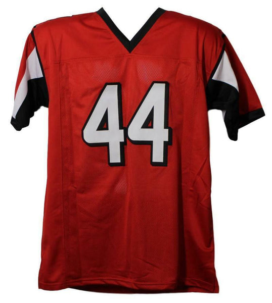Vic Beasley Autographed/Signed Atlanta Falcons XL Red Jersey JSA 21904 This is a custom size XL redjersey with sewn on name and numbers that was personally autographed by Vic Beasley. This jerseyincludes a certificate of authenticity from James Spence Authentication (JSA) and Denver Autographs.