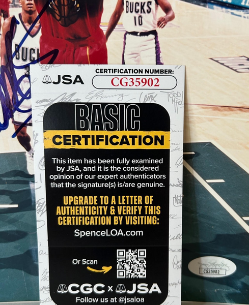 The product is an original 8x10 photo of Dikembe Mutombo, signed by the player himself. The autograph has been authenticated by James Spence Authentication (JSA) and comes with a Certificate of Authenticity (COA). This photo captures a moment from Mutombo's time playing for the Atlanta Hawks in the NBA, making it a valuable collectible for fans of basketball and sports memorabilia. It is a unique and authentic piece that would make a great addition to any fan's collection.