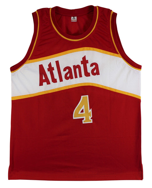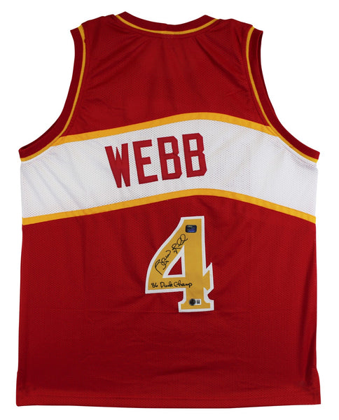 This Autographed Red Pro Style Jersey with the inscription of "1986 Dunk Champ" has been Personally Signed by Spud Webb of the Atlanta Hawks. This item is 100% Authentic to include a hologram by Beckett Authentication Services. This item will come with an affixed Beckett Authentication Services (BAS) authentication sticker, which includes a scannable QR code to verify authenticity. Please note that Beckett no longer provides serial-numbered COA cards, and the attached BAS sticker will serve as the complete authentication for this item. This is a BAS Witnessed Protection Program item which means a Beckett Authentication Service representative was present when this item was being signed. The authenticity can be verified on Beckett Authentication Services website. This is a X-Large sized, non-branded, custom-stitched Jersey.