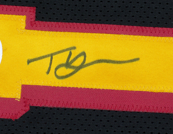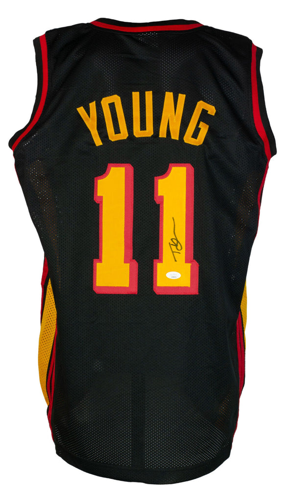 Featured is a Trae Young signed custom black basketball jersey. This jersey was hand signed by Trae Young and has been authenticated by JSA authentication services. Included with the jersey is a JSA hologram and certificate of authentication. This jersey features professionally sewn letters and numbers and is size XL.This is a custom jersey and not to be associated with any league or it's teams. This is intended to be an autographed collectible. SPECIFICATIONS Autographed By: Trae Young Team: Atlanta Hawks Sport: Basketball Authentication: James Spence Authentication (JSA)