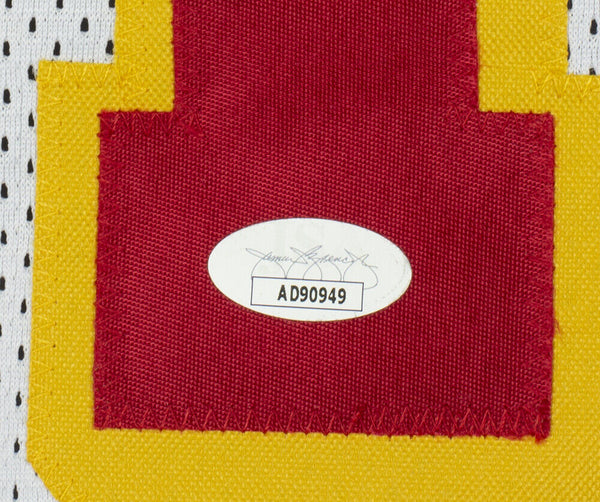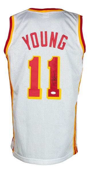 Featured is a Trae Young signed custom white basketball jersey. This jersey was hand signed by Trae Young and has been authenticated by JSA authentication services. Included with the jersey is a JSA hologram and certificate of authentication. This jersey features professionally sewn letters and numbers and is size XL.This is a custom jersey and not to be associated with any league or it's teams. This is intended to be an autographed collectible. SPECIFICATIONS Autographed By: Trae Young Team: Atlanta Hawks Sport: Basketball Authentication: James Spence Authentication (JSA)