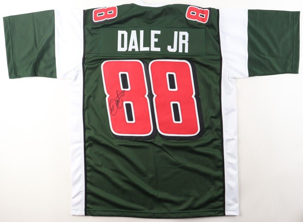 Custom Nascar jersey. Everything is sewn on, size XL. Hand-signed by Dale Earnhardt Jr.The autograph includes an official Jr Motorsports serially numbered hologram for authenticity purposes.Authentication: Jr Motorsports Hologram