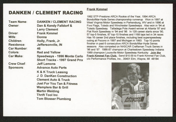 This Autographed 6x9 Promotional Photo has been Personally Signed by Frank Kimmel of the NASCAR. This item is 100% Authentic to include a Certificate of Authenticity (COA) / hologram by Beckett Authentication Services. The authenticity can be verified on Beckett Authentication Services website.