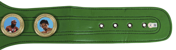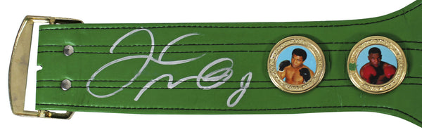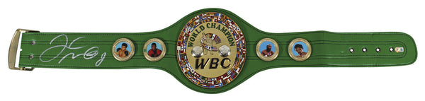 This Autographed Replica WBC Championship Belt has been Personally Signed by Floyd Mayweather. This item is 100% Authentic to include a hologram by Beckett Authentication Services. This item will come with an affixed Beckett Authentication Services (BAS) authentication sticker, which includes a scannable QR code to verify authenticity. Please note that Beckett no longer provides serial-numbered COA cards, and the attached BAS sticker will serve as the complete authentication for this item. This is a BAS Witnessed Protection Program item which means a Beckett Authentication Service representative was present when this item was being signed. We conducted an autograph signing with Floyd Mayweather where multiples of the same item were signed. While the photographs are representative of this item, the size, placement and strength of the signature may vary. Each item is hand signed, therefore, each autograph is unique. This item can be verified through BAS Witnessed.