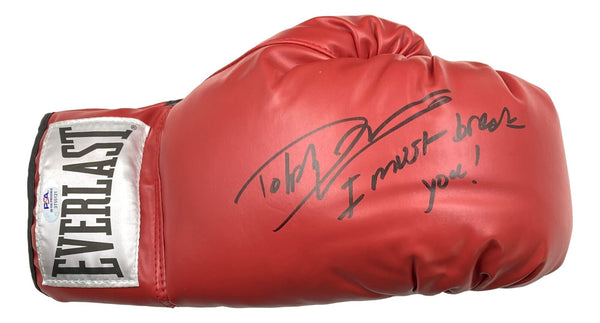 Featured is a Dolph Lundgren signed Everlast boxing glove, inscribed "I Must Break You". This glove has been hand signed by Lundgren and comes with the PSA witnessed hologram and certificate of authenticity. Included with this glove is a deluxe acrylic display case. This glove would make a great addition to any entertainment memorabilia collection!. SPECIFICATIONS Autographed By: Dolph Lundgren Team: Sport: Authentication: Professional Sports Authenticator (PSA)