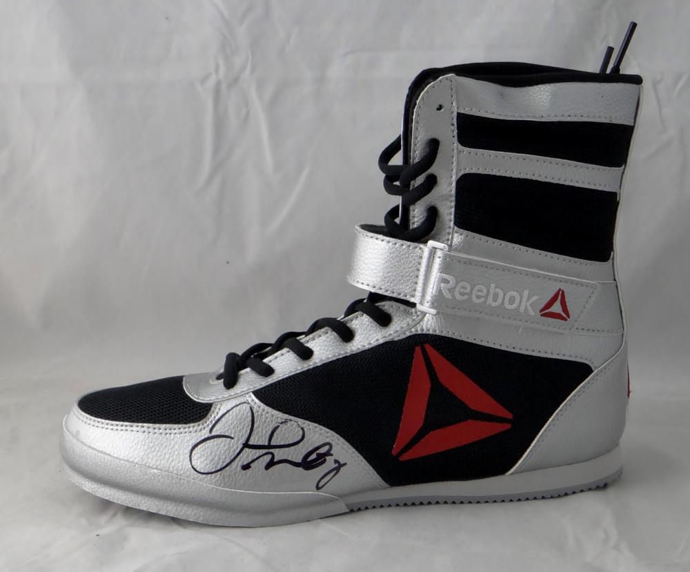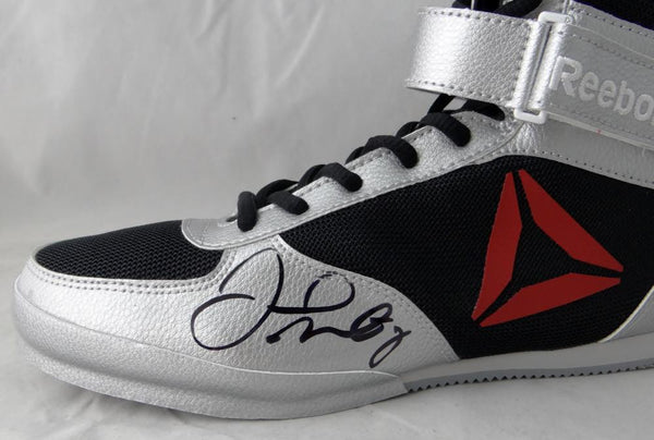 Floyd Mayweather Autographed Reebok Boxing Shoe Left Beckett BAS *Black* This is a Hand Autographed Silver, Black and Red Floyd Mayweather Reebok Boxing Shoe. This item has a Beckett Authentication, which comes with a Beckett #'ed sticker and a matching COA. You can view this item on the Beckett website. It was signed either at a public autograph appearance or a private signing. This is a stock photo of the item. Although you may not receive this exact item, the item you receive is virtually identical and brand new in great shape.