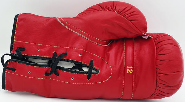 This is a Red Everlast Boxing Glove that has been hand signed by George Foreman. This glove is left handed. This item has been certified authentic by Beckett Authentication (BAS) and comes with their tamper-proof QR Code hologram.