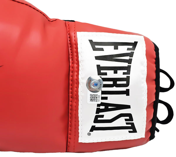 This is a Red Everlast Boxing Glove that has been hand signed by Michael B Jordan. This glove is left handed. This item has been witnessed and certified authentic by Beckett Authentication (BAS) and comes with their tamper-proof witness sticker.