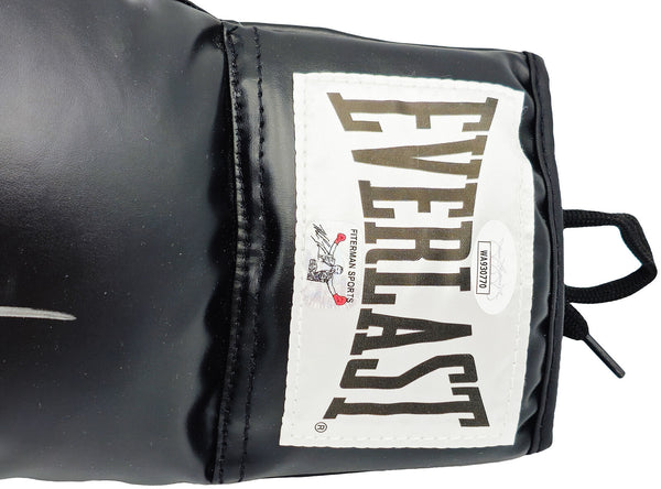 This is a Black Everlast Left Handed LH Boxing Glove that has been hand signed by Mike Tyson. This item has been certified authentic by JSA and comes with their tamper-proof sticker and matching certificate of authenticity.
