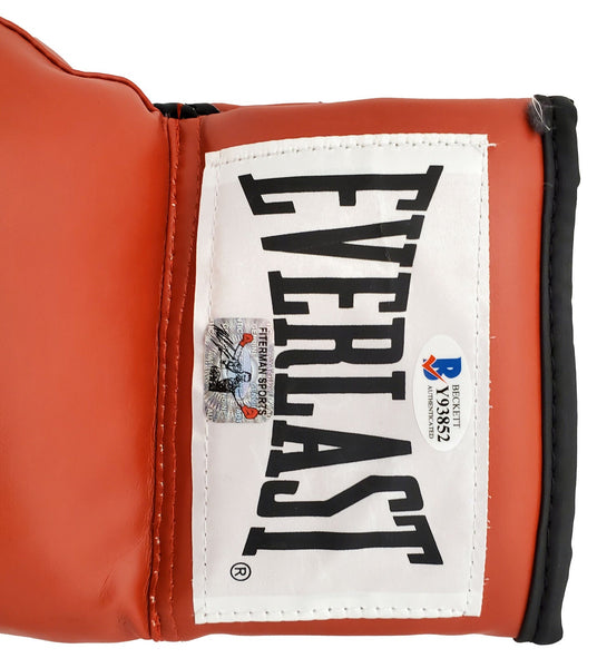 This is a Red Everlast Boxing Glove that has been hand signed by Mike Tyson.??A This one is Left handed. It has been authenticated by Beckett (BAS) and has the official tamper-proof sticker and matching certificate of authenticity.