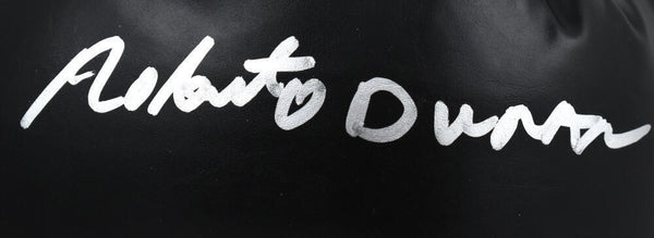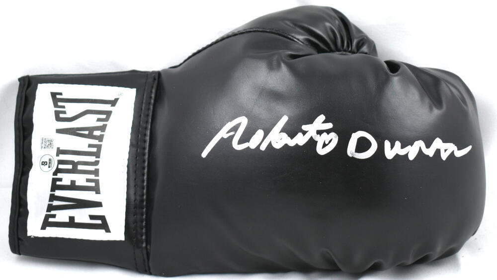 Roberto Duran Autographed Black Everlast Boxing Glove *Right - Beckett W Hologram *Silver This is a Hand Autographed Boxing Glove of Roberto Duran. This is a Black Everlast Boxing Glove. This item has a Beckett Witnessed Authentication, which comes with a Beckett #'ed hologram and a QR code for verification. You can view this item on the Beckett website, it shows when and where the item was signed. It was signed either at a public autograph appearance or a private signing. This is a stock photo of the item. Although you may not receive this exact item, the item you receive is virtually identical and brand new in great shape.