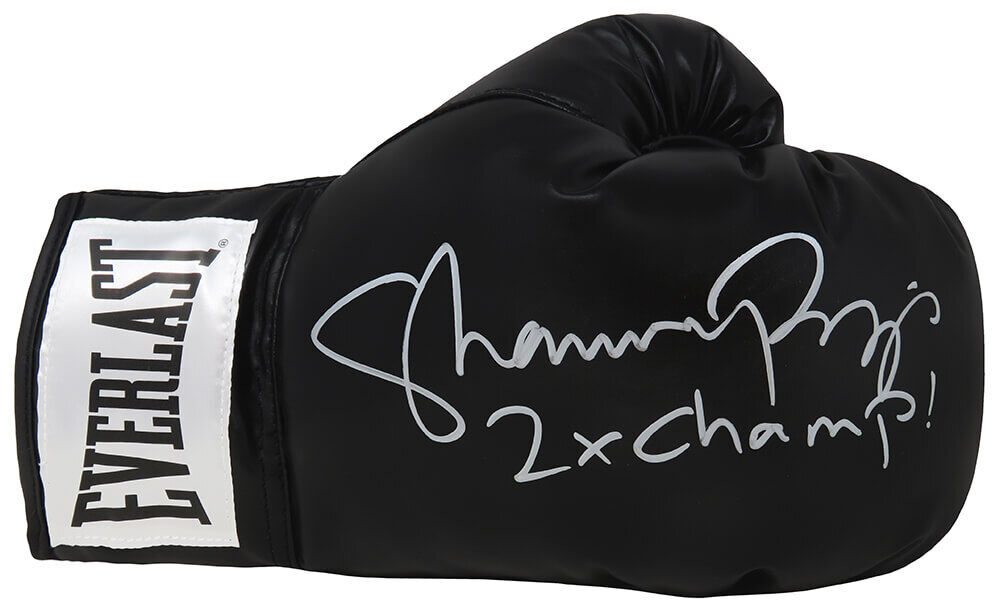 Shannon Briggs signed black Everlast boxing glove with '2x Champ' inscription. Item comes with a Schwartz Sports Memorabilia tamper-proof numbered hologram and Certificate of Authenticity which can be verified online.