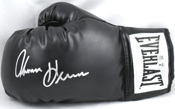 Tommy Hearns Autographed Black Everlast Boxing Glove *Left - Beckett W Hologram *Silver This is a Hand Autographed Boxing Glove of Tommy Hearns. This is a Black Everlast Boxing Glove. This item has a Beckett Witnessed Authentication, which comes with a Beckett #'ed hologram and a QR code for verification. You can view this item on the Beckett website, it shows when and where the item was signed. It was signed either at a public autograph appearance or a private signing. This is a stock photo of the item. Although you may not receive this exact item, the item you receive is virtually identical and brand new in great shape.