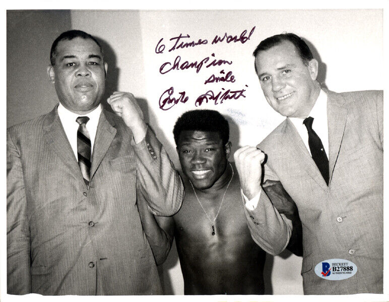 This is a 7x9 Photo that has been hand signed by Emile Griffith. It has been certified authentic by Beckett Authentication (BAS) and comes with their sticker and matching certificate of authenticity.