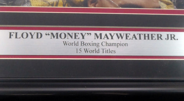 This is a framed 16x20 Photo, approximately 24x28 with the frame,A that has been hand signed by Floyd Mayweather Jr.A It has been certified authentic by Beckett Authentication (BAS) and comes with their sticker and matching certificate of authenticity.