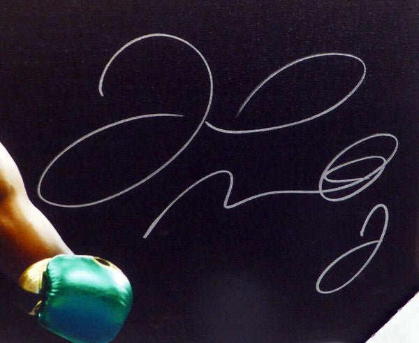 This is a framed 20x30 Canvas, approximately 22x32 with the frame, that has been hand signed by Floyd Mayweather Jr. The autograph has been certified authentic by Beckett (BAS) and comes with their sticker and matching certificate of authenticity.