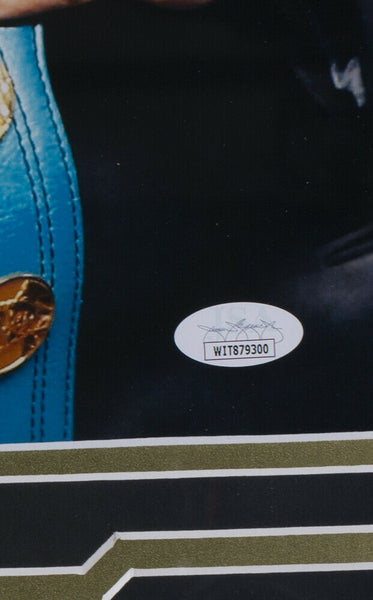 Featured is a Floyd Mayweather Jr. signed framed 16x20 photo. This photo was hand signed by Floyd Mayweather Jr. and authenticated by JSA authentication services. Included with the photo is a JSA hologram and certificate of authenticity. Brand new professional framing featuring double matting and an engraved nameplate. The frame measures approximately 27x22 in total size. The frame is ready for display. SPECIFICATIONS Autographed By: Floyd Mayweather Jr. Team: Sport: Boxing Authentication: James Spence Authentication (JSA)