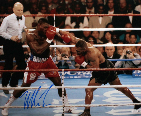 Mike Tyson Autographed 16x20 Landing Punch Photo- JSA W Auth *Left This is a hand autographed 16x20 Photo of Mike Tyson. This item has a James Spence Witness Protection Authentication, which comes with a numbered sticker and a matching JSA Certificate of Authenticity. You can view this item on the SpenceLOA website. It was signed either at a public autograph appearance or a private signing. This is a stock photo of the item. Although you may not receive this exact item, the item you receive is virtually identical and brand new in great shape.