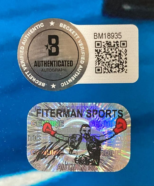Featured is a Mike Tyson signed 16x20 Evander Holyfield Ear Bite fight photo. This photo has been hand signed by Tyson and comes with the Beckett hologram and certificate of authenticity. This photo would make a great addition to any sports memorabilia collection.. SPECIFICATIONS Autographed By: Mike Tyson Team: Sport: Boxing Authentication: Beckett Grading Services