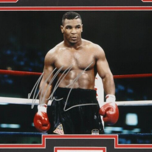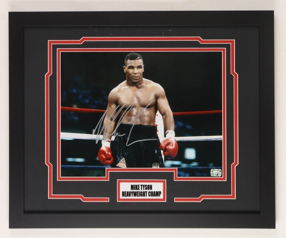 Custom framed display measures 18" x 22" in size and features a photo that has been hand-signed by Mike Tyson (HOF).Mike Tyson holds the record as the youngest boxer to win the WBC, WBA and IBF heavyweight titles at 20 years, 4 months, and 22 days old. Tyson won his first 19 professional bouts by knockout, 12 of them in the first round. He won the WBC title in 1986. In 1987, Tyson added the WBA and IBF titles. He was the first heavyweight boxer to simultaneously hold the WBA, WBC and IBF titles, and the only heavyweight to successively unify them.The autograph includes an official Fiterman Sports Group Mike Tyson Hologram.Authentication: Mike Tyson / Fiterman Sports Hologram