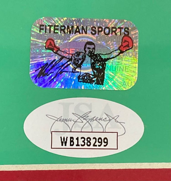 Featured is a Mike Tyson signed 11x14 Punch Out boxing photo. This photo has been hand signed by Mike Tyson and comes with the JSA witnessed hologram and certificate of authenticity. This photo has been professionally framed and matted and is approximately 16x20. This photo would make a great addition to any sports memorabilia collection!. SPECIFICATIONS Autographed By: Mike Tyson Team: Boxing Sport: Boxing Authentication: James Spence Authentication (JSA)