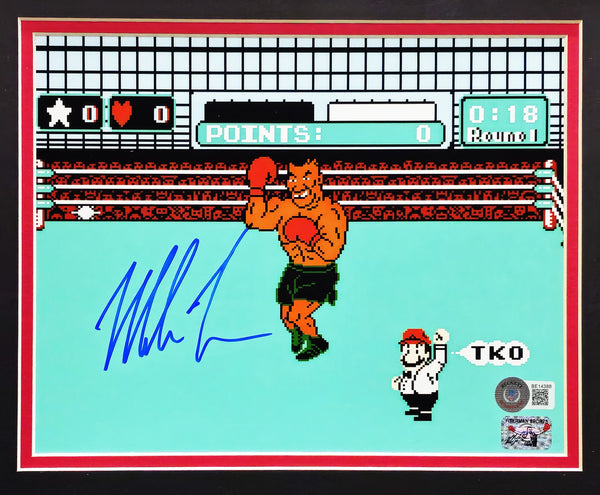 This is a Framed 11x14 Nintendo Punch-Out!! Photo With NES Controller, approximately 20x24 with the frame, that has been hand signed by Mike Tyson. This item has been certified authentic by Beckett Authentication (BAS) and comes with their tamper-proof QR Code sticker that can be verified on beckett-authentication.com.