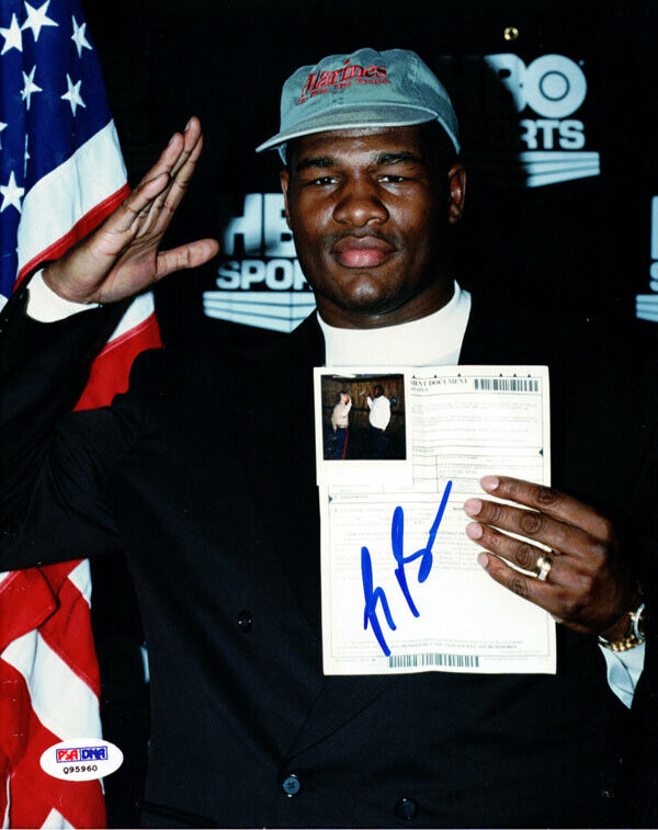This is an 8x10 Photo that has been hand signed by Riddick Bowe. It has been certified authentic by PSA/DNA and comes with their sticker and matching certificate of authenticity.