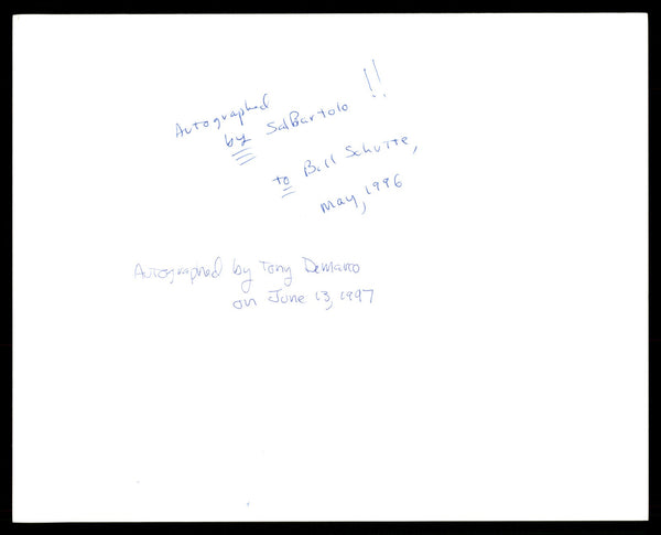 This is a 8x10 Photo that has been hand signed by Sal Bartolo & Tony DeMarco. This item was inscribed "To Bill." This item is guaranteed to pass any third party authentication company including Beckett, PSA/DNA & JSA authentication.