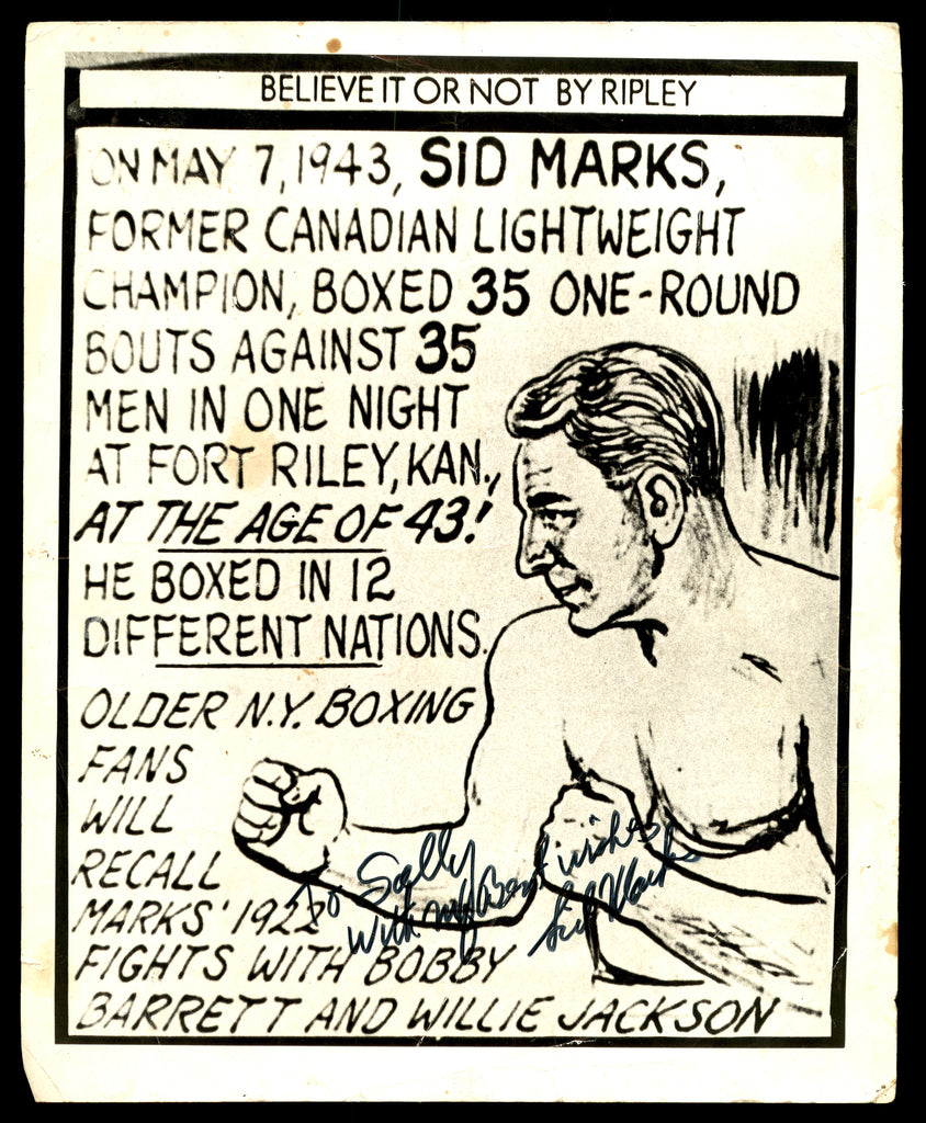 Sid Marks Autographed 8x10 Photo Canadian Champion "To Sally Best Wishes" 179689