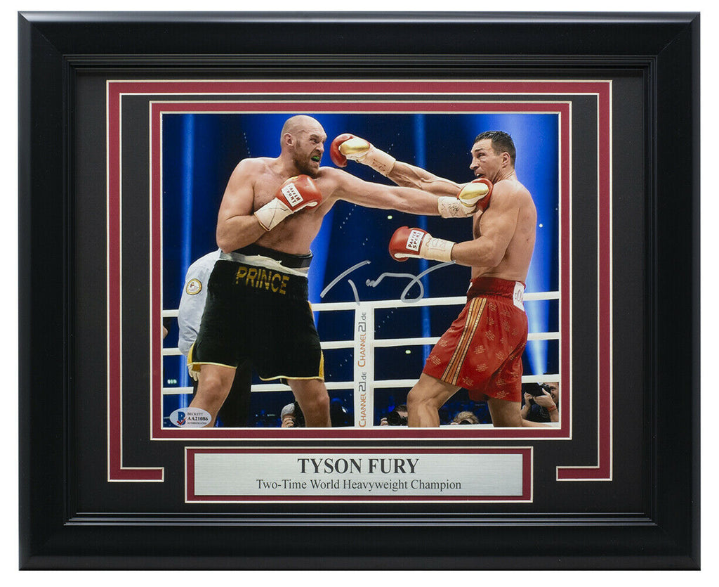 Featured is a Tyson Fury signed framed 8x10 boxing photo. This photo was hand signed by Tyson Fury and authenticated by Beckett authentication services. Included with the photo is a Beckett hologram and certificate of authentication. This photo has been professionally framed and matted and is approximately 11x14.. SPECIFICATIONS Autographed By: Tyson Fury Team: Sport: Boxing Authentication: Beckett Grading Services