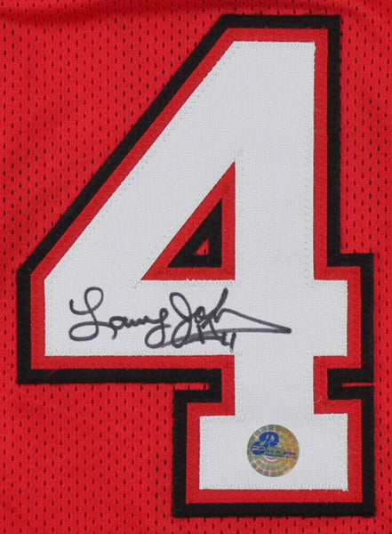 Custom on-field style jersey. Everything is sewn on, size XL. Hand-signed in black felt-tip pen by Larry Johnson. The lot / autograph(s) includes an official Pro Player hologram for authenticity purposes.Authentication: Pro Player Hologram