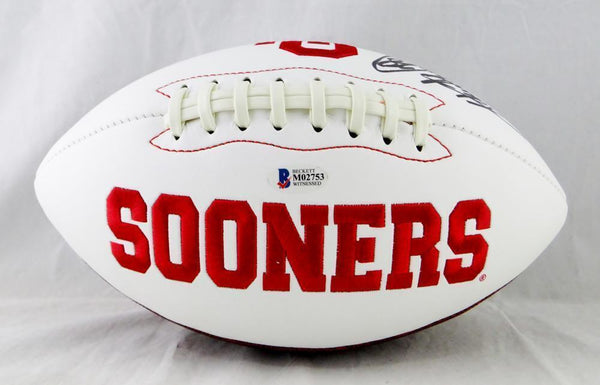 Adrian Peterson signed Oklahoma Sooners Logo Football- Beckett Authenticated This is a Hand Autograph of Adrian Peterson of the Oklahoma Sooners on a Signature Series Logo Football. This item has a Beckett Authentication, which comes with a numbered sticker and a matching Certificate of Authenticity. You can view this item on the Beckett Authentication website. It was signed either at a public autograph appearance or a private signing. This is a stock photo of the item. Although you may not receive this exact item, the item you receive is virtually identical and brand new in great shape.