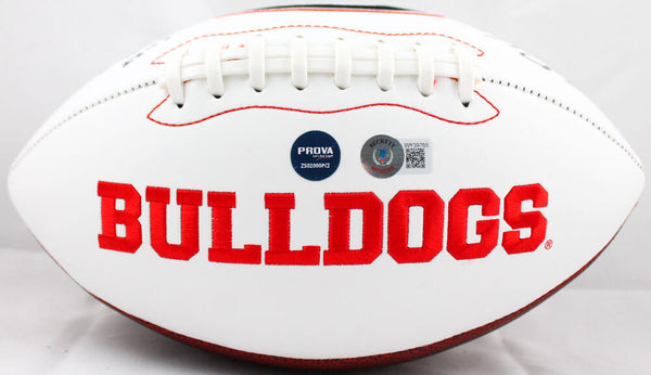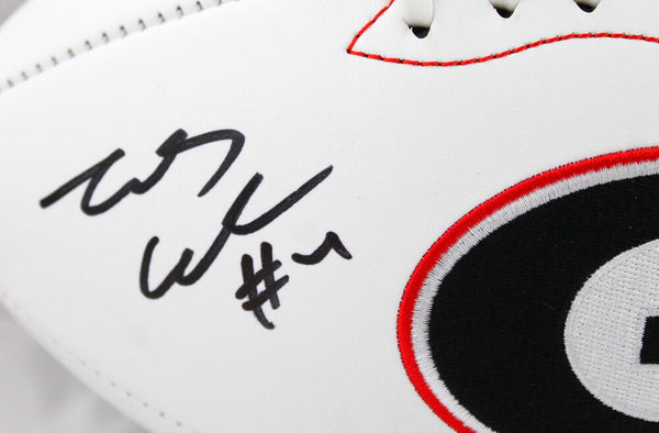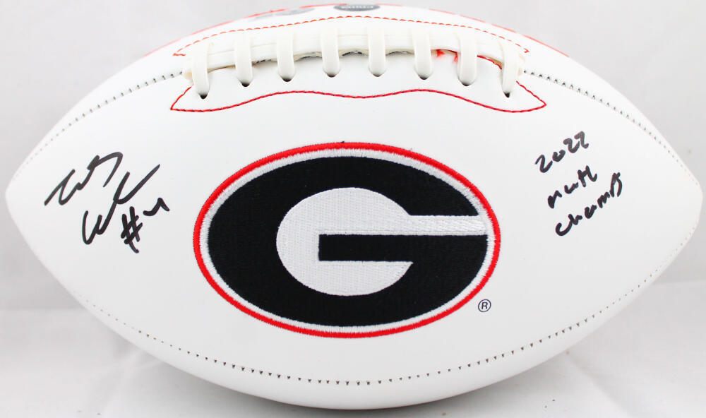 James Cook Autographed Georgia Bulldogs Logo Football w/22 Natl Champs-Beckett W Hologram *Black This is a Hand Autographed Football of James Cook. This is a Georgia Bulldogs Logo Football. Inscribed 22 Natl Champs. This item has a Beckett Witness Authentication, which Comes with a Beckett #'ed Sticker hologram and a QR code for verification. You can view this item on the Beckett website and it shows when and where the item was signed. It was signed either at a public autograph appearance or a Private Signing. This is a stock photo of the item. Although you may not receive this exact item, the item you receive is virtually identical and brand new in great shape.