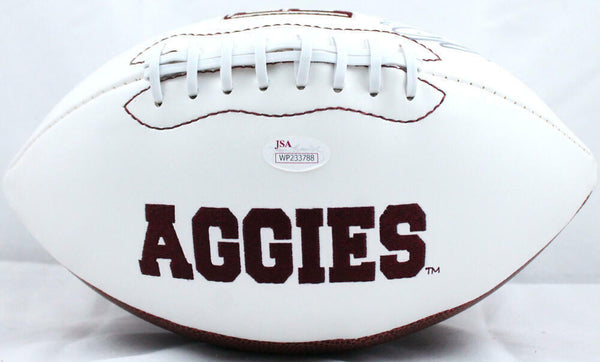 This is a hand autographed football of Johnny Manziel. This is a Texas A&M Aggies Logo football. This item has a James Spence Witness Protection Authentication, which comes with a JSA numbered sticker and a matching JSA COA. You can view this item on the SpenceLOA website, it shows when and where the item was signed. It was signed either at a public autograph appearance or a Private Signing. This is a stock photo of the item. Although you may not receive this exact item, the item you receive is virtually identical and brand new in great shape. This is a hand autographed football of Johnny Manziel. This is a Texas A&M Aggies Logo football. This item has a James Spence Witness Protection Authentication, which comes with a JSA numbered sticker and a matching JSA COA. You can view this item on the SpenceLOA website, it shows when and where the item was signed. It was signed either at a public autograph appearance or a Private Signing. This is a stock photo of the item. Although you may not receive this exact item, the item you receive is virtually identical and brand new in great shape.