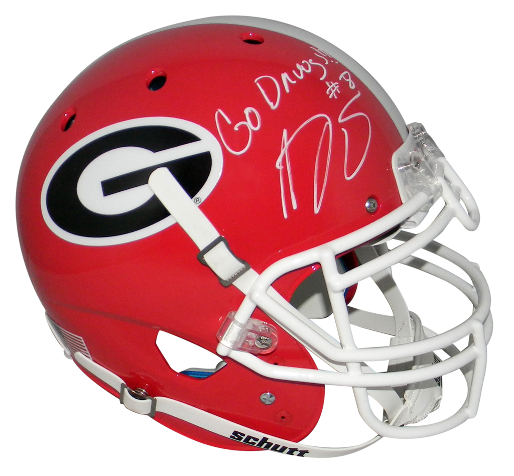 AJ Green, former All-American wide receiver for the Bulldogs, has hand signed this Georgia Schutt full-size authentic helmet at a private signing. He included the inscription "Go Dawgs!!". This helmet is fully padded inside like the ones worn on the field. This item comes with a certificate of authenticity (COA) from Beckett Authentication Services and was signed in the presence of one of their representatives. You will receive a serial-numbered COA along with a matching serial-numbered sticker on the helmet. The authenticity can be verified online by entering the serial number.Item pictured may not be the exact item you will receive. It will be similar quality, and we guarantee your satisfaction.