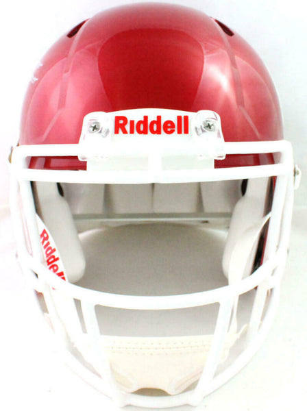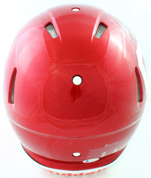 Adrian Peterson Autographed Oklahoma Sooners F/S Speed Authentic Helmet w/ Inscription - Beckett Witness *Silver This is a hand autograph of Adrian Peterson of the Oklahoma Sooners on a Riddell Football Full Size Speed Authentic Helmet and inscribed with "Boomer Sooner". This item has a Beckett Witness Authentication, which comes with a Beckett numbered and a matching Certificate of Authenticity. You can view this item on the Beckett website, it shows when and where the item was signed. It was signed either at a public autograph appearance or a private signing. This is a stock photo of the item. Although you may not receive this exact item, the item you receive is virtually identical and brand new in great shape.