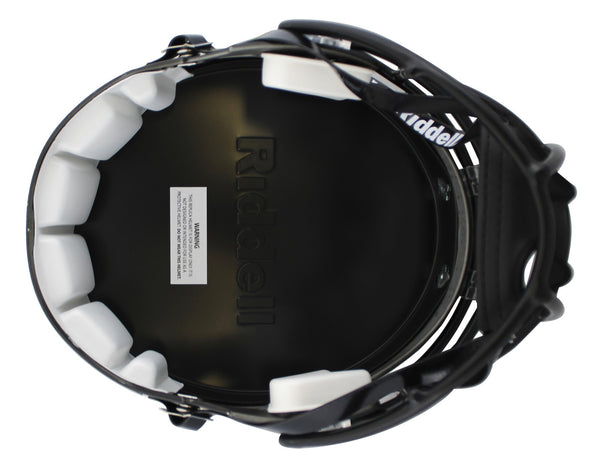 This Autographed Black Riddell Full Size Speed Rep Helmet with the inscription of "Fork Em" has been Personally Signed by Terrell Suggs of the Arizona State Sun Devils. This item is 100% Authentic to include a hologram by Beckett Authentication Services. This item will come with an affixed Beckett Authentication Services (BAS) authentication sticker, which includes a scannable QR code to verify authenticity. Please note that Beckett no longer provides serial-numbered COA cards, and the attached BAS sticker will serve as the complete authentication for this item. This is a BAS Witnessed Protection Program item which means a Beckett Authentication Service representative was present when this item was being signed. We conducted an autograph signing with Terrell Suggs where multiples of the same item were signed. While the photographs are representative of this item, the size, placement and strength of the signature may vary. Each item is hand signed, therefore, each autograph is unique. This item can be verified through BAS Witnessed.