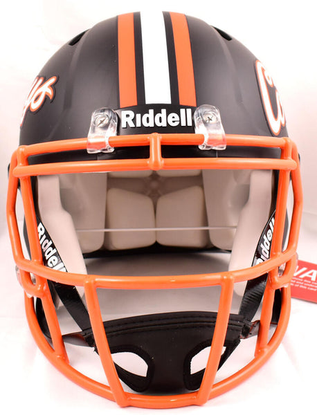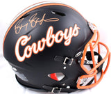 Barry Sanders Autographed Oklahoma State Cowboys F/S Black Speed Authentic Helmet-Beckett Hologram *Orange This is a hand autographed Helmet of Barry Sanders of the Oklahoma State Cowboys. This is a Riddell Football Full Size Black Alternative Speed Authentic Helmet. This item has a Beckett Witness Authentication, which comes with a Beckett numbered sticker hologram and a QR code for verification. You can view this item on the Beckett Authentication website. It was signed either at a public autograph appearance or a private signing. This is a stock photo of the item. Although you may not receive this exact item, the item you receive is virtually identical and brand new in great shape.