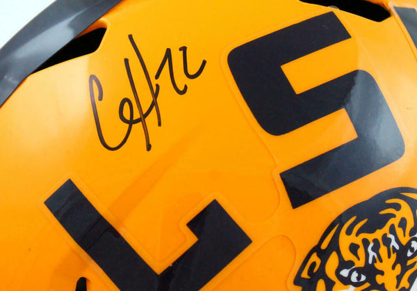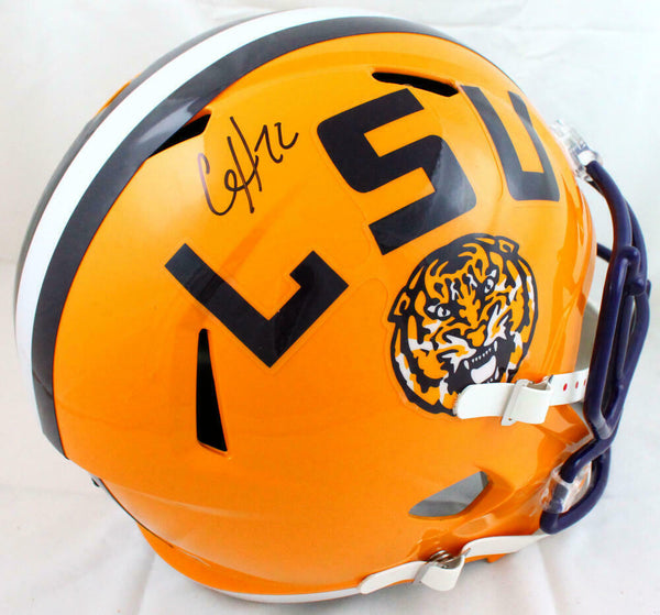 Clyde Edwards-Helaire Autographed LSU Tigers F/S Speed Helmet-Beckett W Hologram *Black This is a Clyde Edwards-Helaire of the LSU Tigers hand autographed Riddell Football Speed Full Size Repica Helmet. This item has a Beckett Witnessed Authentication, which comes with a numbered sticker hologram and a QR code for verification. You can view this item on the Beckett website and it shows when and where the item was signed. It was signed either at a public autograph appearance or a private signing. This is a stock photo of the item. Although you may not receive this exact item, the item you receive is virtually identical, brand new, and in great shape.