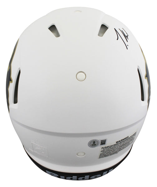 This Autographed White Riddell Full Size Speed Proline Helmet W/ Uv Mirrored Back Acrylic Display Case with the inscription of "24 Heisman" has been Personally Signed by Travis Hunter of the Colorado Buffaloes. This item is 100% Authentic to include a hologram by Beckett Authentication Services. This item will come with an affixed Beckett Authentication Services (BAS) authentication sticker, which includes a scannable QR code to verify authenticity. Please note that Beckett no longer provides serial-numbered COA cards, and the attached BAS sticker will serve as the complete authentication for this item. This is a BAS Witnessed Protection Program item which means a Beckett Authentication Service representative was present when this item was being signed. We conducted an autograph signing with Travis Hunter where multiples of the same item were signed. While the photographs are representative of this item, the size, placement and strength of the signature may vary. Each item is hand signed, therefore, each autograph is unique. This item can be verified through BAS Witnessed.