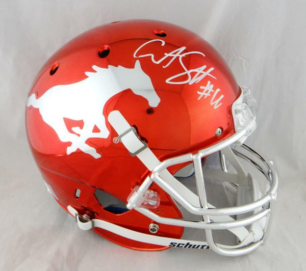 Courtland Sutton Autographed SMU Red Chrome F/S Schutt Helmet - Beckett Auth *W