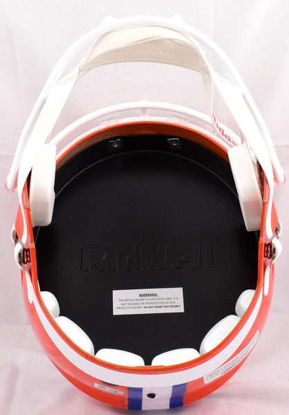 Emmitt Smith Autographed Florida Gators F/S Speed Helmet - Beckett W Hologram *Black This is a Emmitt Smith of the Florida Gators hand autographed Riddell Football F/S speed Replica helmet. This item has a Beckett Witnessed Authentication, which comes with a numbered hologram and a QR code for verification. You can view this item on the Beckett Authentication website and it shows when and where the item was signed. It was signed either at a public autograph appearance or a private signing. This is a stock photo of the item. Although you may not receive this exact item, the item you receive is virtually identical, brand new, and in great shape.