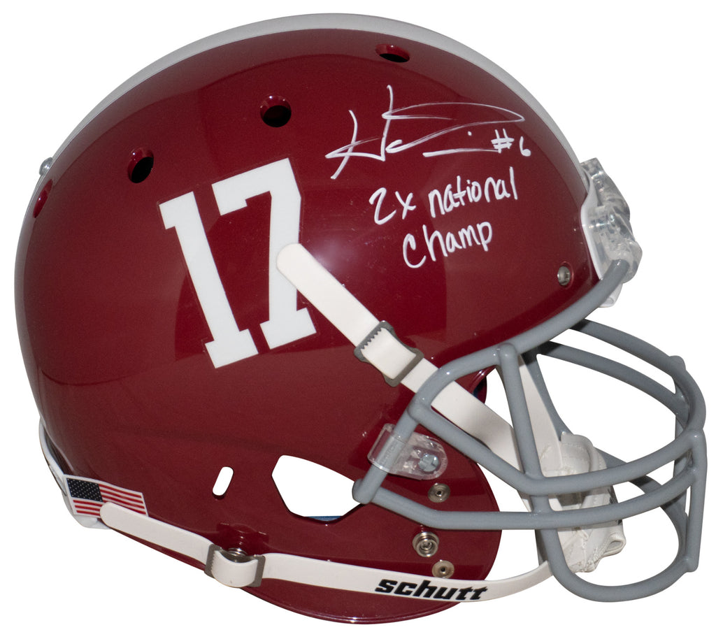HaHa Clinton-Dix, former All-American safety for the Crimson Tide, has hand signed this Alabama Schutt full-size replica helmet at a private signing. He included the inscription "2x National Champ" with his signature. This item comes with a certificate of authenticity (COA) from JSA - James Spence Authentication and was signed in the presence of one of their representatives. You will receive a serial-numbered COA along with a matching serial-numbered sticker on the helmet. The authenticity can be verified online by entering the serial number.Item pictured may not be the exact item you will receive. It will be similar quality, and we guarantee your satisfaction.