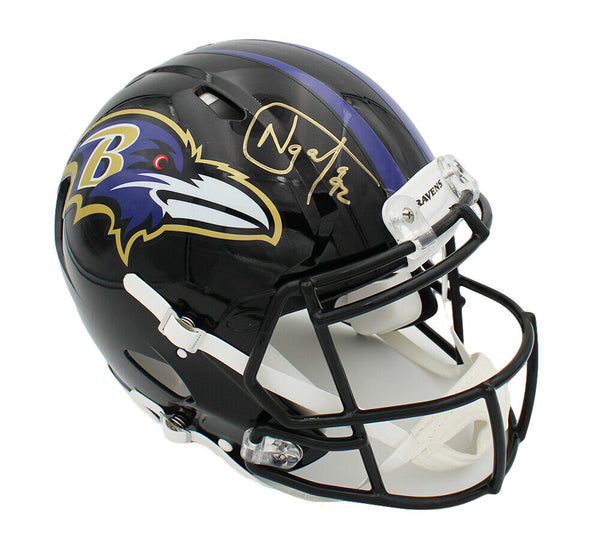 A Baltimore Ravens Speed Authentic NFL Helmet hand signed by Haloti Ngata. The item and signature are in excellent condition. Haloti was Drafted into the NFL in 2006 in Round:1 and Pick:12. Haloti is Super Bowl Champion (XLVII). Haloti 2xFirst-team All-Pro (2010,2011). Haloti 3xSecond-team ALL-Pro (2008,2009,2012). Haloti 5x Pro Bowl (2009-2013). Haloti Baltimore Ring of Honor. Haloti is Consensus All-American (2005). AUTHENTICATION: This item is accompanied by a Certificate of Authenticity - Serial Numbered and Databased Hologram - Picture of Haloti from the Signing