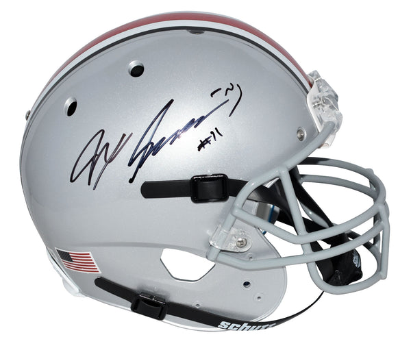Jaxon Smith-Njigba, former All-American wide receiver for the Buckeyes, has hand signed this Ohio State Schutt full-size replica helmet at a private signing. This item is authenticated by Beckett Authentication Services and was signed in the presence of one of their representatives. Their tamper-evident hologram featuring a QR code and serial number is on the item. The authenticity can be verified online by entering the serial number or scanning the QR code.Item pictured may not be the exact item you will receive. It will be similar quality, and we guarantee your satisfaction.