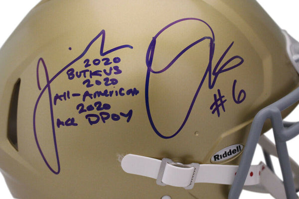 Jeremiah Owusu-Koramoah Signed Notre Dame Authentic Helmet 3 Insc BAS 34209 The number in the listing title is just an inventory sku for our records and is not the authentication number. The item pictured is a stock photo unless otherwise noted. This is a Cleveland Browns full size authentic classic speed helmet that was personally autographed by Jeremiah Owusu-Koramoah with 3 Inscriptions. Includes a certificate of authenticity from Beckett Authentication Services (BAS) and Denver Autographs.