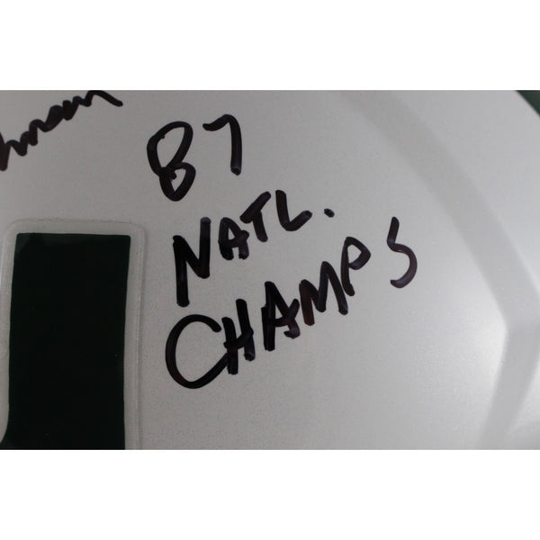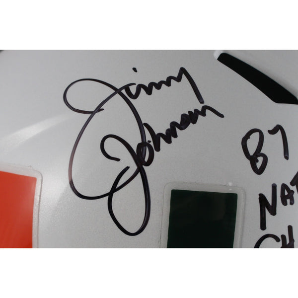The number in the listing title is just an inventory sku for our records and is not the authentication number. The item pictured is a stock photo unless otherwise noted. This is a Miami Hurricanes Full Size Replica Helmet that was personally autographed by Jimmy Johnson includes "87 Champs" inscription. Includes a certificate of authenticity from Beckett Authentication Services (BAS) and Denver Autographs.FREE SHIPPING within the USA on orders over $10!
