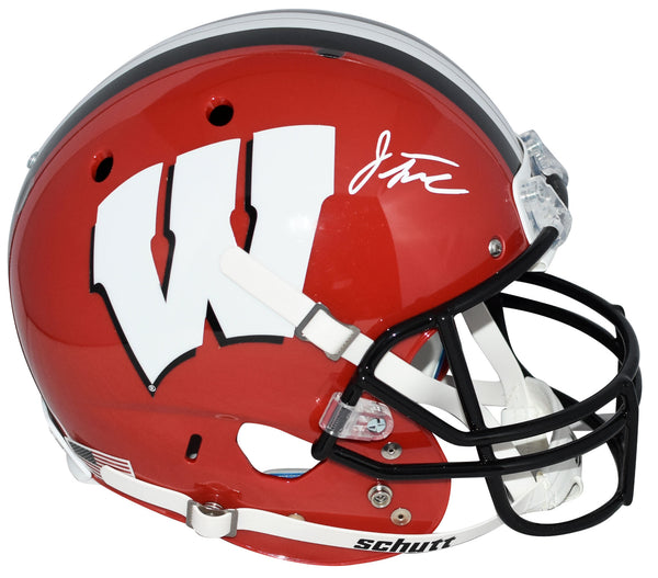 Jonathan Taylor, former All-American running back for the Badgers, has hand signed this Wisconsin Schutt full-size replica helmet at a private signing. This item is authenticated by Beckett Authentication Services, one of the top authenticators in the industry. Their tamper-evident hologram featuring a QR code and serial number is on the item. The authenticity can be verified online by entering the serial number or scanning the QR code.Item pictured may not be the exact item you will receive. It will be similar quality, and we guarantee your satisfaction.