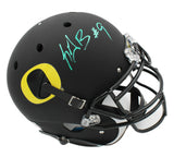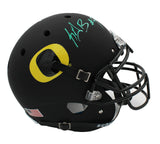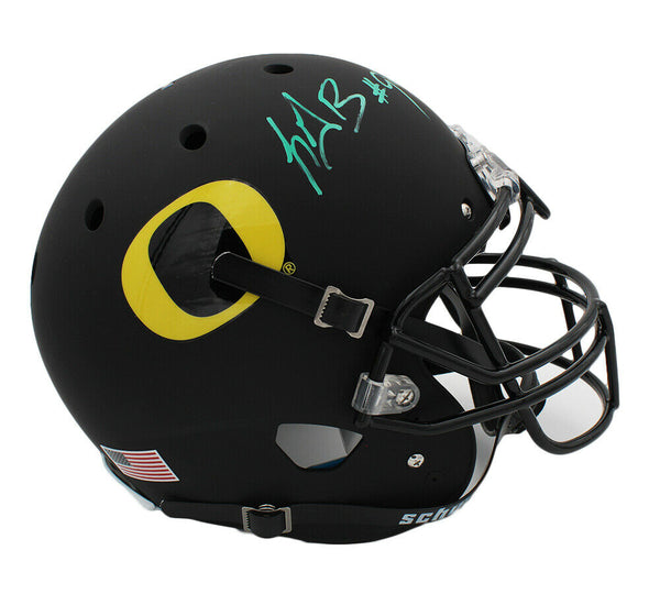 An Oregon Ducks Schutt Authentic Black NCAA Helmet hand signed by LeGarrette Blount. The item and signature are in excellent condition. LeGarrette is a former running back who played in the NFL for nine seasons. Blount rushed for over 1,000 yards in each of his two seasons in junior college. He then committed to the Oregon Ducks football program as a junior, for the 2008 season. That year, he ran for over 1,000 yards and scored a school-record 17 touchdowns. He entered the NFL as an undrafted free agent with the Tennessee Titans in 2010, but joined the Tampa Bay Buccaneers before the start of the 2010 NFL season. He also played for the Pittsburgh Steelers in 2014, between his two stints with the New England Patriots, followed by the Philadelphia Eagles in 2017 and the Detroit Lions in 2018. AUTHENTICATION: The item is accompanied by a Certificate of Authenticity - Serial Numbered and Databased Hologram - Picture of LeGarrette from the signing